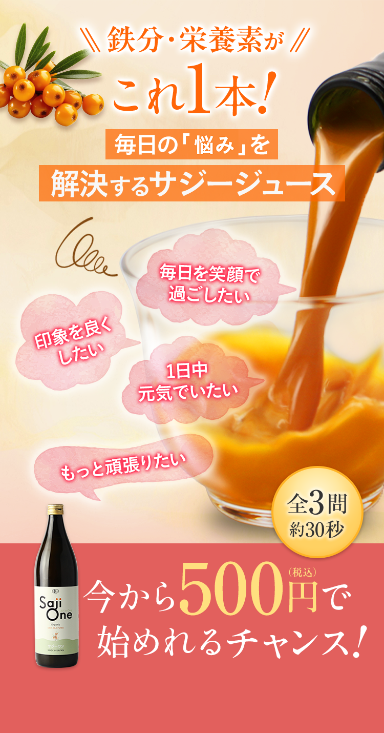 ※1 サジー原料に関する論文調査より ※2 生果実中No1の鉄含有量:食品成分データベース(文部科学省)で2008~2022年の分析結果の平均値と比較。成分分析依頼先:一般社団法人食品分析開発センターSUNATEC。栄養素の含有量は収穫年の天候等により変動がございます。